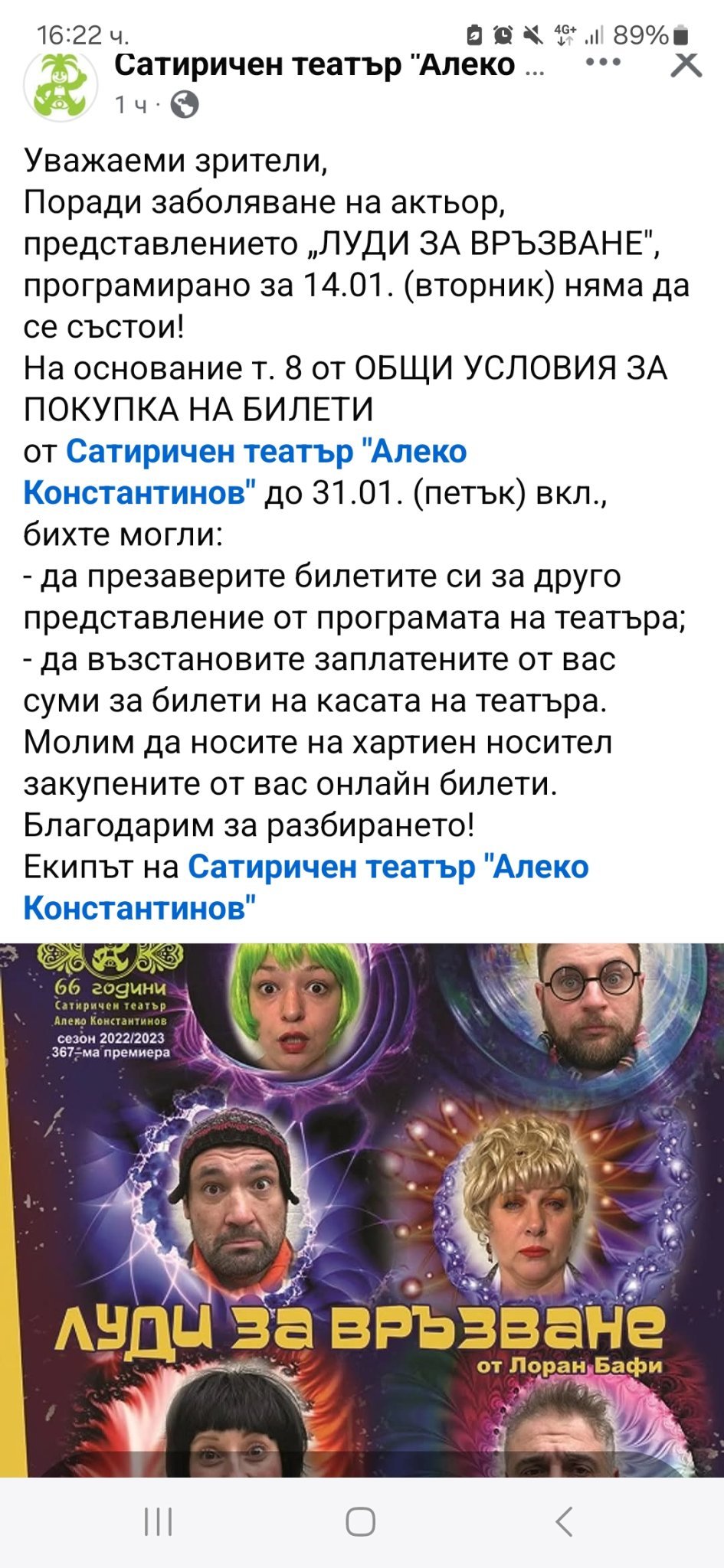 Аз пък избягвам спектаклите на Народния театър. Имам няколко разочарования преди 2 години и чакам да ми мине.