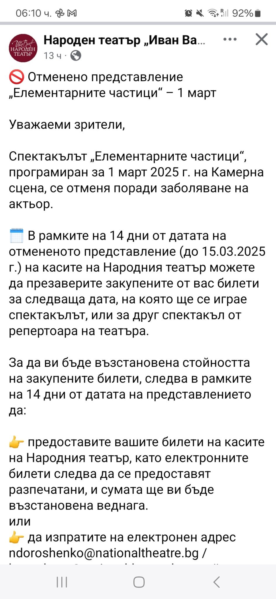 Възможно е, всеки вижда нещата по различен начин. Hug Но пък от моя "опит" с театъра, мога да потвърдя, че не всяко представление минава добре и всички да са перфектно концентрирани. Гледала съм някои представления по няколко пъти и актьорите често играят различно (понякога играта им не е толкова силна и въздействаща). Имам някои познати актьори и понякога през деня им се случват толкова неща като проблеми в някой проект, умира техен близък или домашен любимец, родителите им не са добре и ги карат по болници и т.н. И е много трудно вечер да отидеш да играеш представление и да си концентриран на 100 процента. Така че тук в случая може би съм уцелила добър момент. 😄