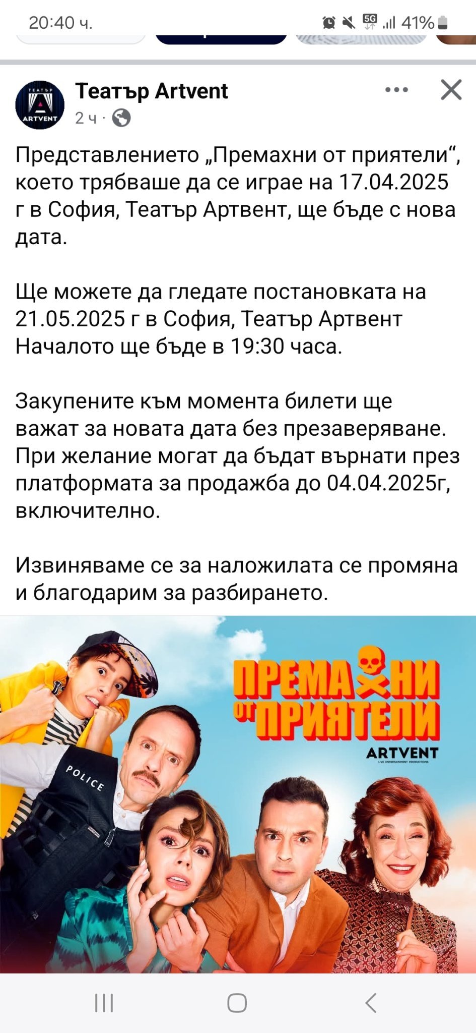 Не разбрах как точно да купя билети? През евентим само ми излиза представлението...