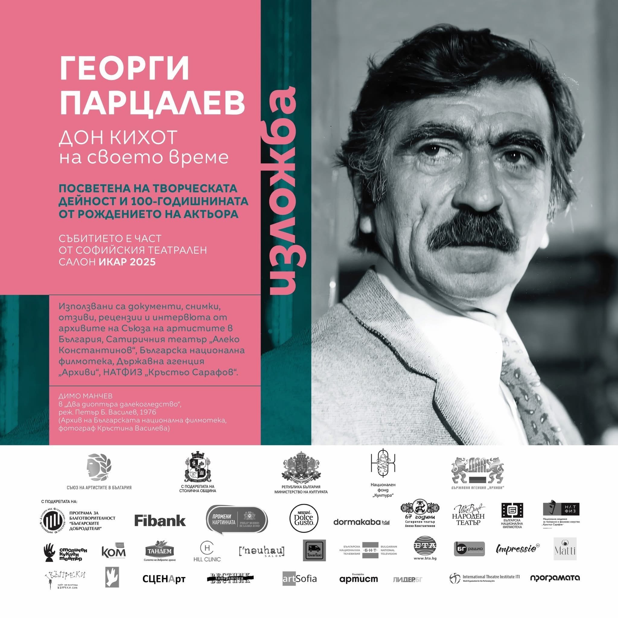 На 24 март от 17:00 ч. в Галерия на открито „Градска градина“ пред Народен театър „Иван Вазов“ ще бъде открита документалната изложба „Георги Парцалев – Дон Кихот на своето време“, посветена на 100-годишнината от рождението на един от най-обичаните български актьори и един от емблематичните актьори-основатели на Държавния сатиричен театър, в чиято трупа постъпва през 1956 г. и на който посвещава 32 активни творчески сезона!