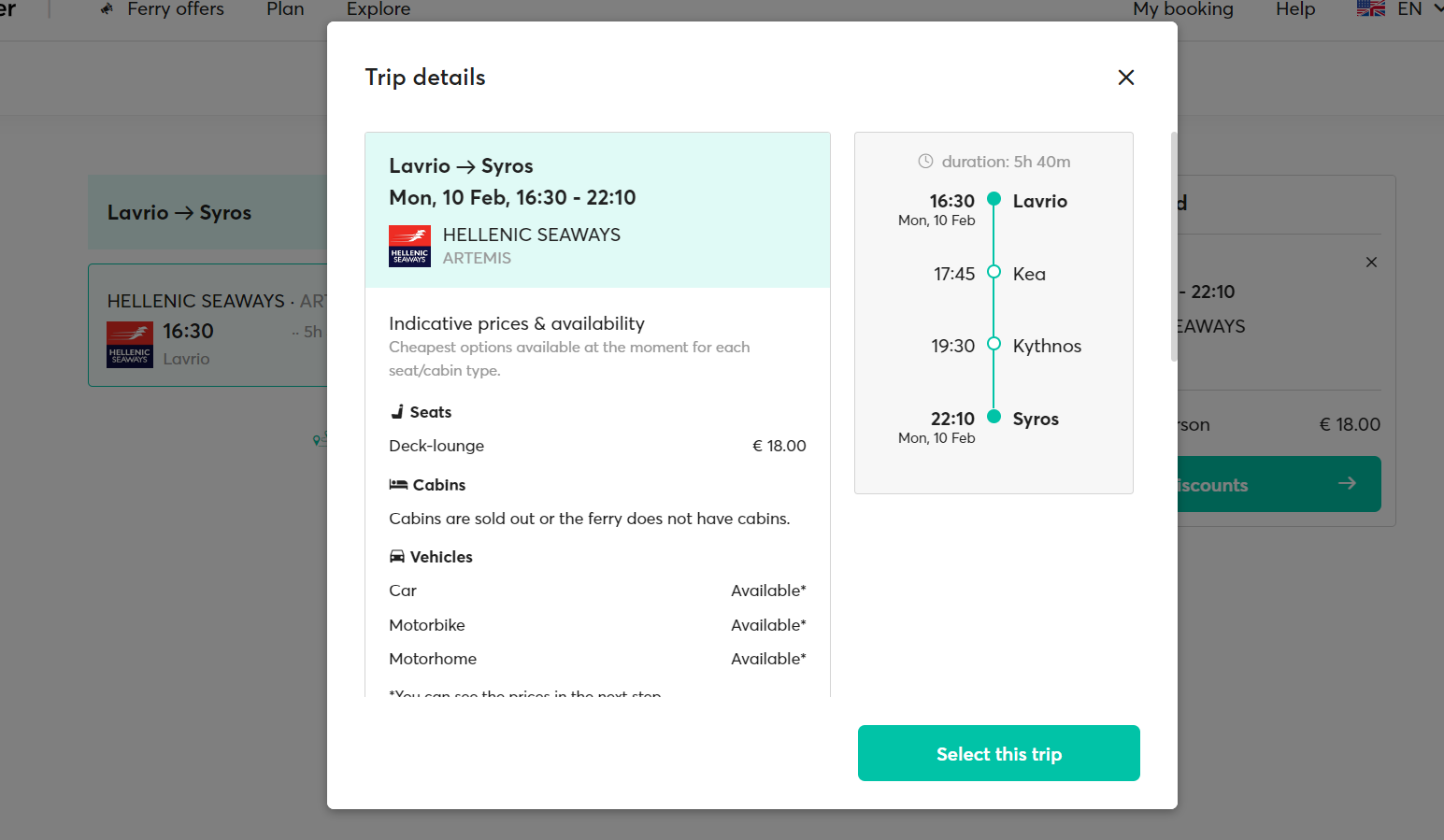 Този кораб миналото лято се движеше само в четвъртък през Андрос, Тинос и Сирос, а цените на билетите бяха доста ниски, като вероятно са по-приемливи и за кола.