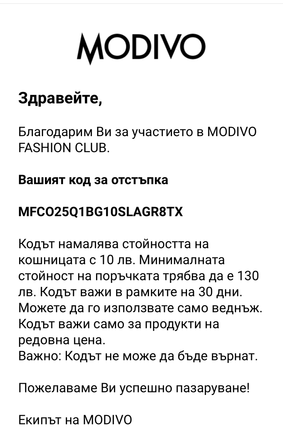 Здравейте, някой разполага ли с код за Fashion days. Благодаря Ви.