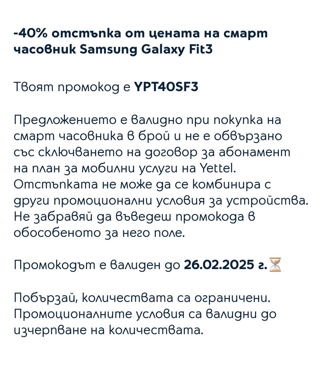 Редактирам се: пробвах да поръчам като гост и хваща кода, така че не е само за клиенти на Yettel.