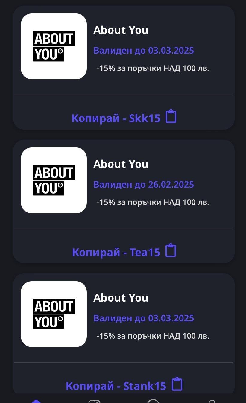 Smile, тези кодове на Синсей са еднакви за всички. Всички ги получаваме. От приложението промоциите са едни и същи за всеки клиент.
