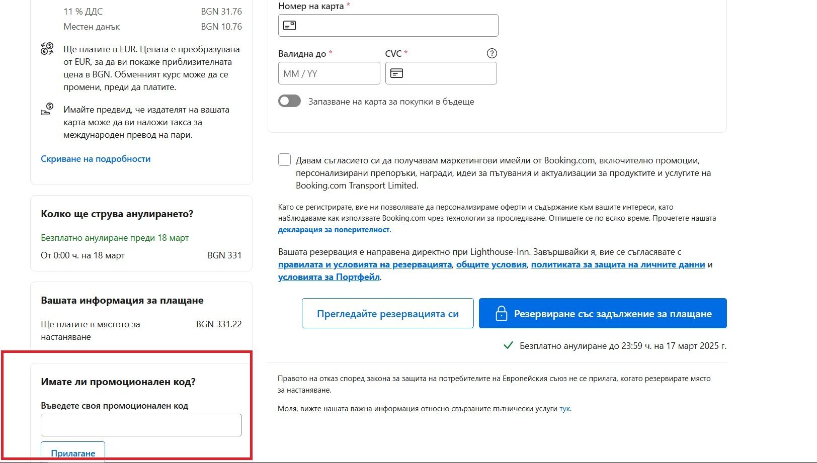 Аз ли нещо не съм наред... Получих код за Букинг днес и няколко пъти търся къде да го въведа, но не виждам поле. Винаги ли е възможно да се приложат кодове или съм харесала нещо, при което е неприложим, как да разбера?