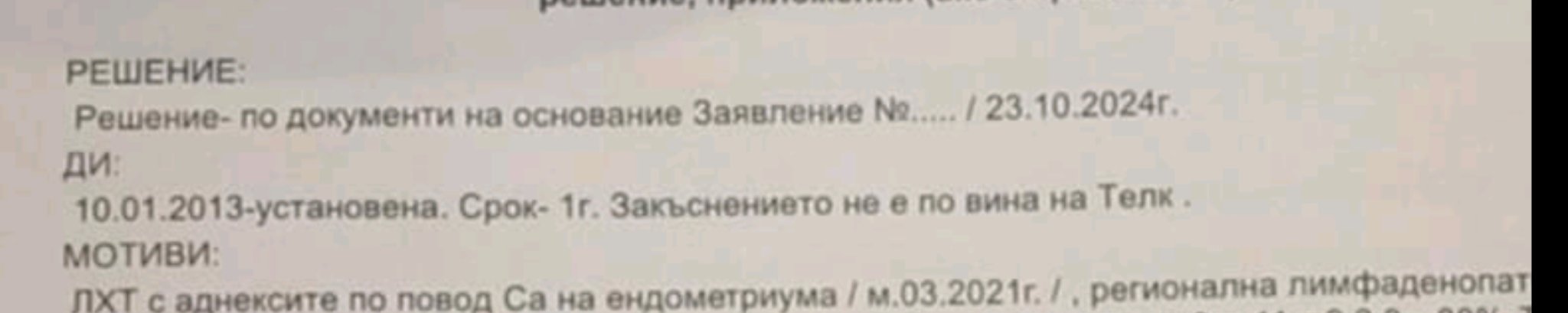 От снимката става ясно, че позната има дата на инвалидизация от 2013 година. Друго не.