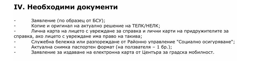 Минах през пункт за издаване на карти, за да попитам какъв е реда. Там ми казаха, че отивам в бюрото за социални дейности по настоящ адрес само с Решението от ТЕЛК. Оттам щели да ми кажат в кое бюро да отида, за да ми се издаде такава карта. Обаче реших все пак да проверя как стоят нещата и чета следното: