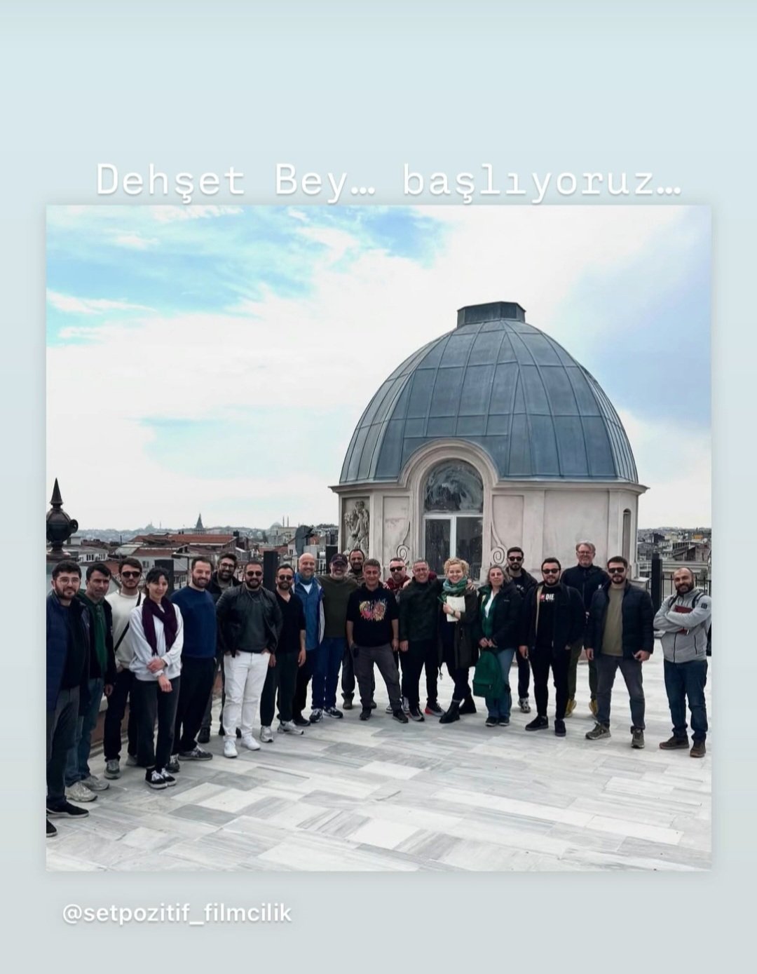 Снимката е на покрив, защо са там и коя е сградата? Най-вероятно подготвят терена за снимки. Вече си фантазирам сцени по покрива.