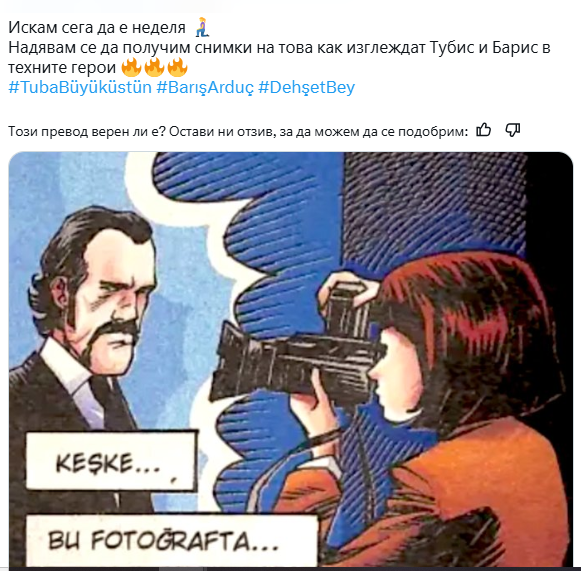"Според Бирсен Алтунташ записите на филма #DehşetBey с участието на #BarışArduç и #TubaBüyüküstün започват в неделя, това е адаптация на известен турски комикс за герой, подобен на Джон Уик."