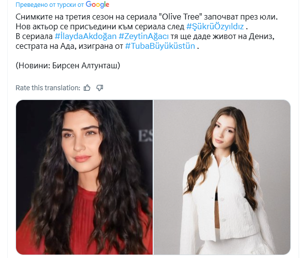 Илайда Акдоаан ще участва в „Маслиново дърво“