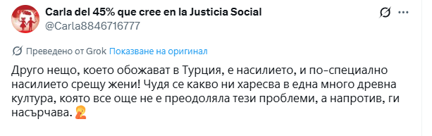 Не снимах, но една дама се чудеше, защо нещо фундаментално и норма в цивилизования свят, като уважението към жените, в Турция, е по-скоро пожелателно и неинтересно на публиката. Няма ли насилие - няма турски сериал. Така че, като сме такива любители на турските сериали, няма защо да се чудим на агресията сред подрастващите на улицата. Дори от най-безобидния сериал се леят убийства и агресия!