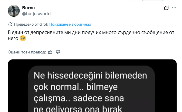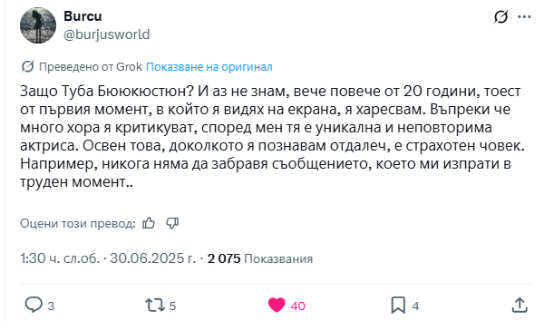 Не съм получавала съобщения от Туба, когато съм изпадала в депресивно състояние, но и аз се интересувам само от нея и свързаните с Туба актьори и явно не съм сама.