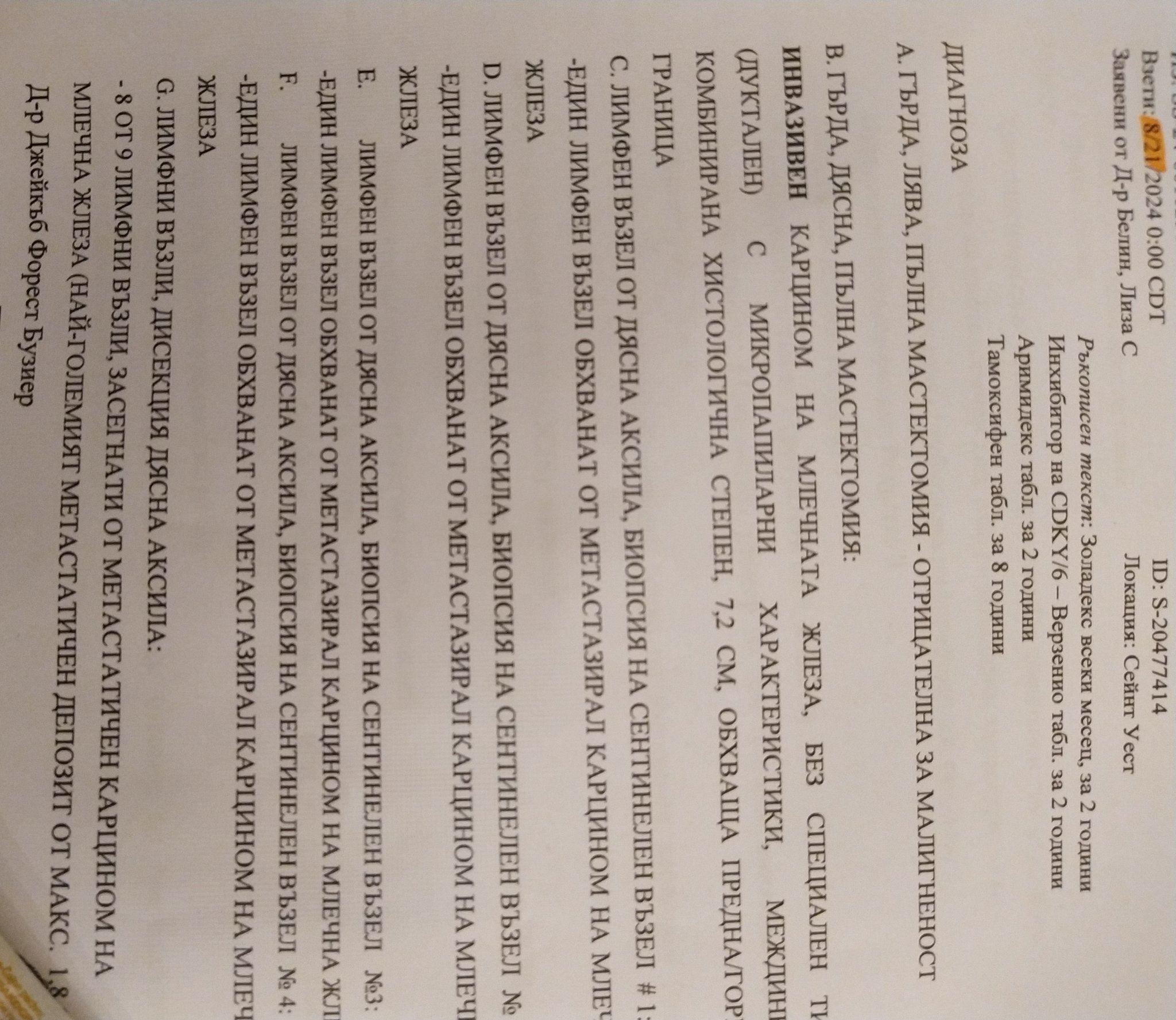 Неда, а тези биопсии на лв, които ги пише в началото всъщност са направени по време на операцията, а не преди това, така ли? По време на операцията хирургът се е усъмнил и е проверил дали има метастази там? Не са направени предварително и после да се оперира?