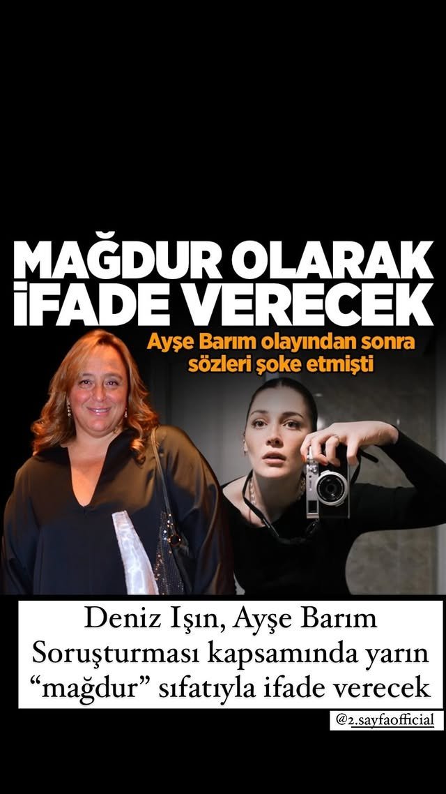 Дениз Ишин ще свидетелства утре като „жертва“ в обхвата на разследването на Ayşe Barım