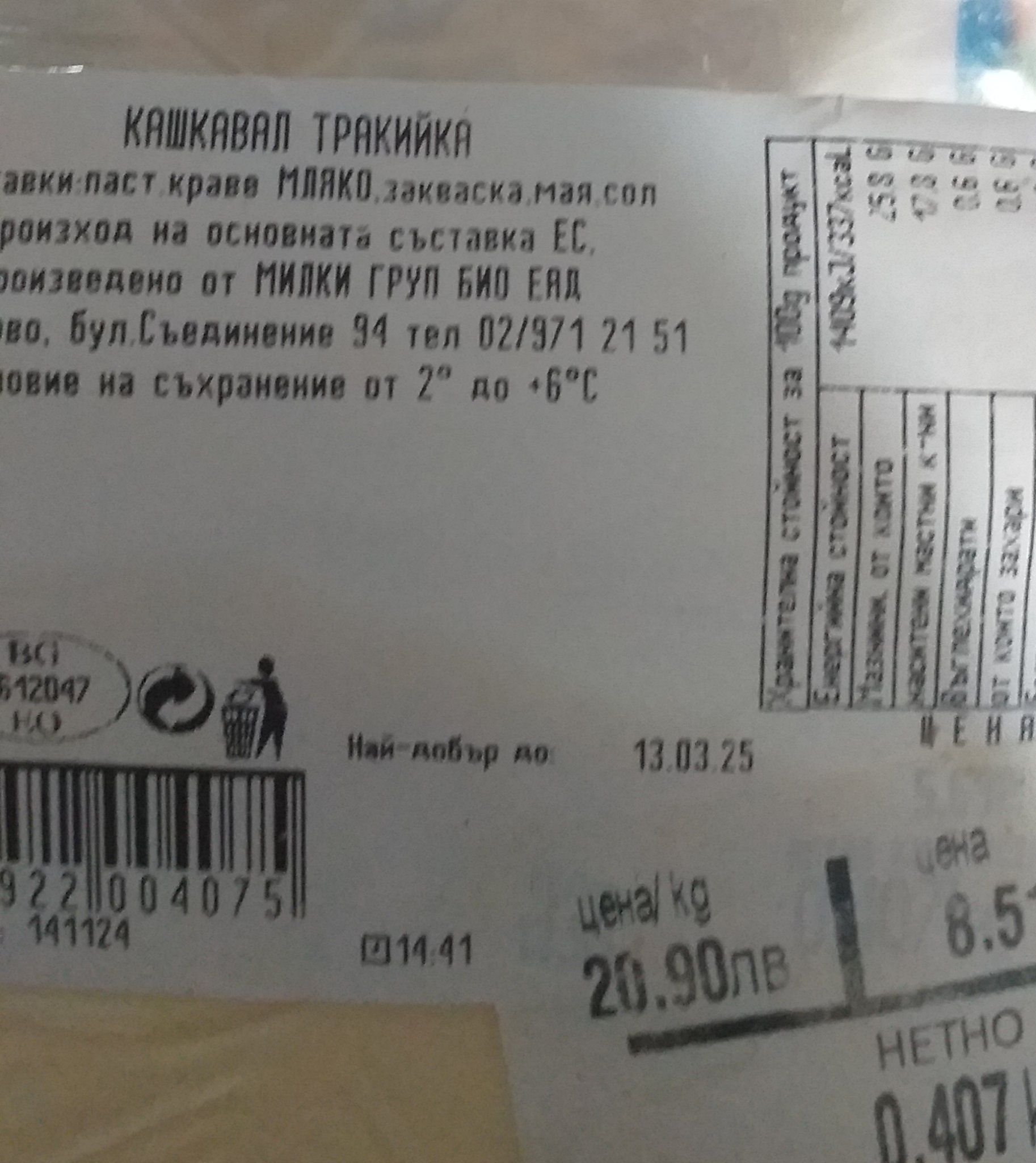 Добре се реже, приятен аромат, наситен млечен вкус, топи се без да отделя вода и мазнина и се точи чудесно!