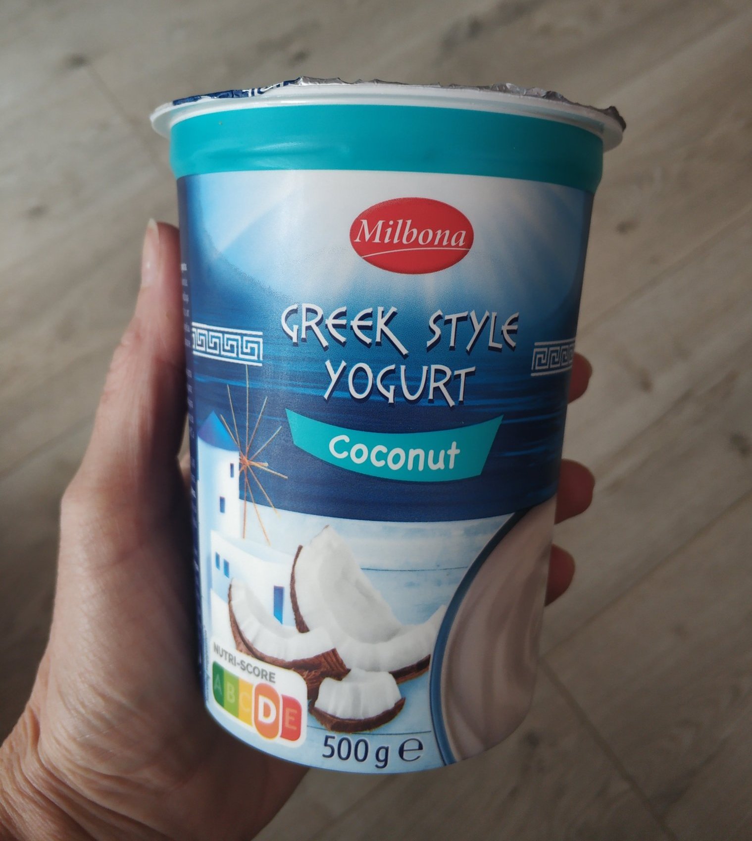 Гръцки йогурт с кокос от Лидл. Много приятна текстура и вкус на кокос, единствения минус е, че е доста сладък.