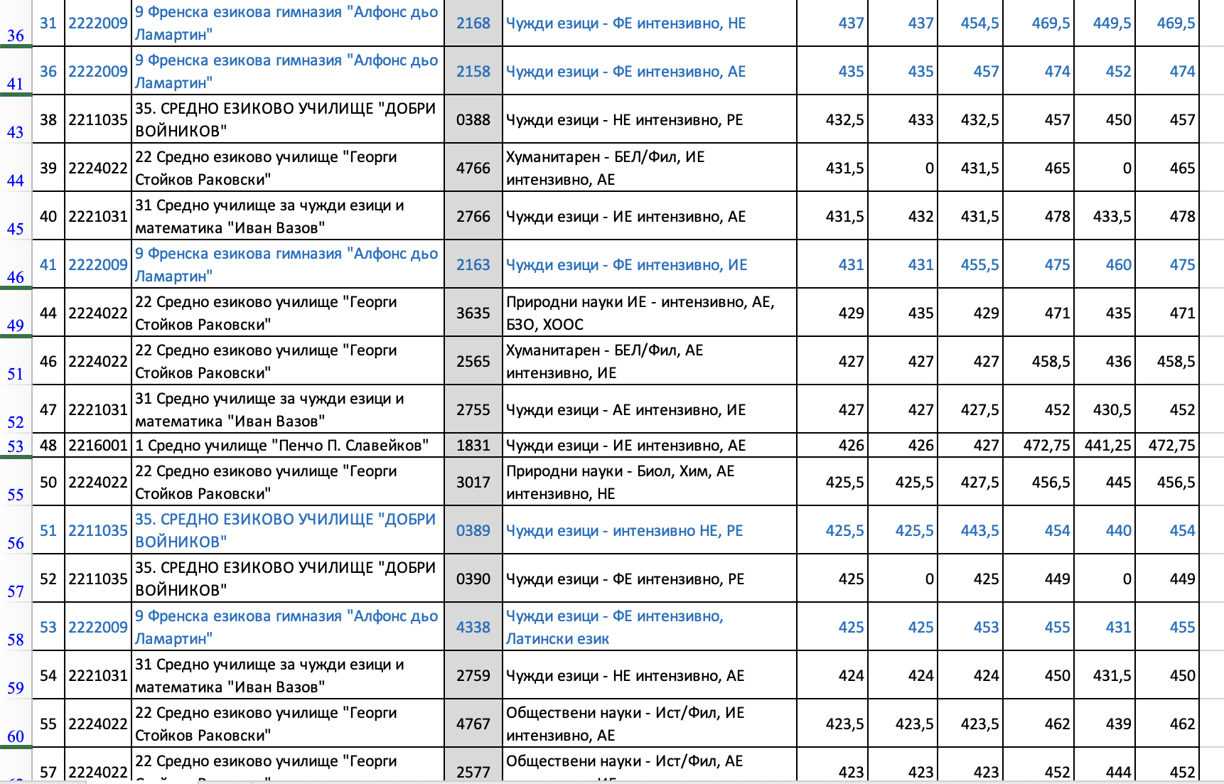 кратка извадка от второ класиране миналата година : баловете на т нар.елит с баловете на т.нар втори ешелон