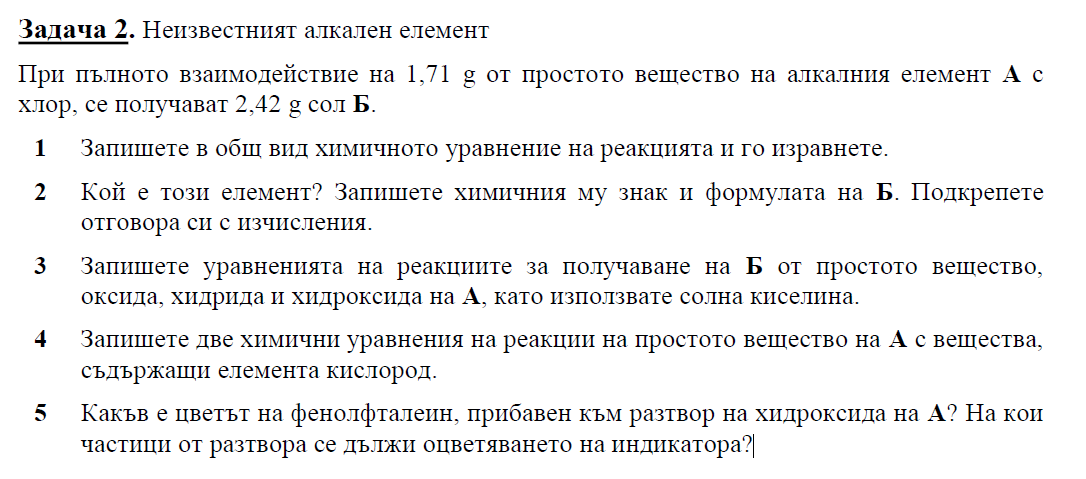 За съжаление аз с химията не мога да помогна. Вчера разпечатах предишната година задачите, и решенията. Резултатът му беше отчайващ. Много от нещата не били учили. Не знам само как е постигнал 85% на общинския кръг. Вероятно задачите са били много лесни. Същото и по математика. Решихме да не се задълбаваме в олимпиадите излишно, каквото направи, това ще е. И без това по математика така препускат в училище, че изобщо не смогваме да упражним темата и у дома.