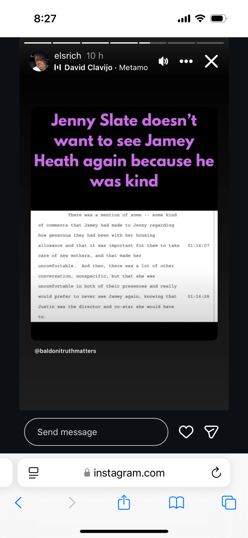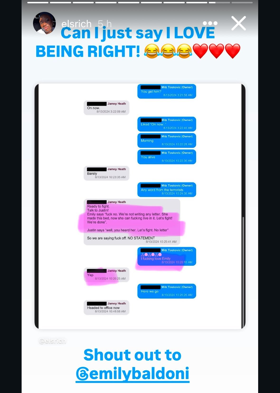 Редактирам/ Имам чувството, че Блейк и Раян се опитват да договорят споразумение на заден план, но Балдони и ко не се поддават и нещата стават много откачени. Вече се чудят какво да измислят. Едната снимка е от разпитите, не знам на кого е, но пише, че Джени Слейт се е почувствала неудобно от коментар на Джейми Хийт, че се е важно за тях да се погрижат за млади майки. Това по повод, че й бяха отпуснали повече пари за настаняването й с детето й, докато снимат?! Тъпа овца 🐑