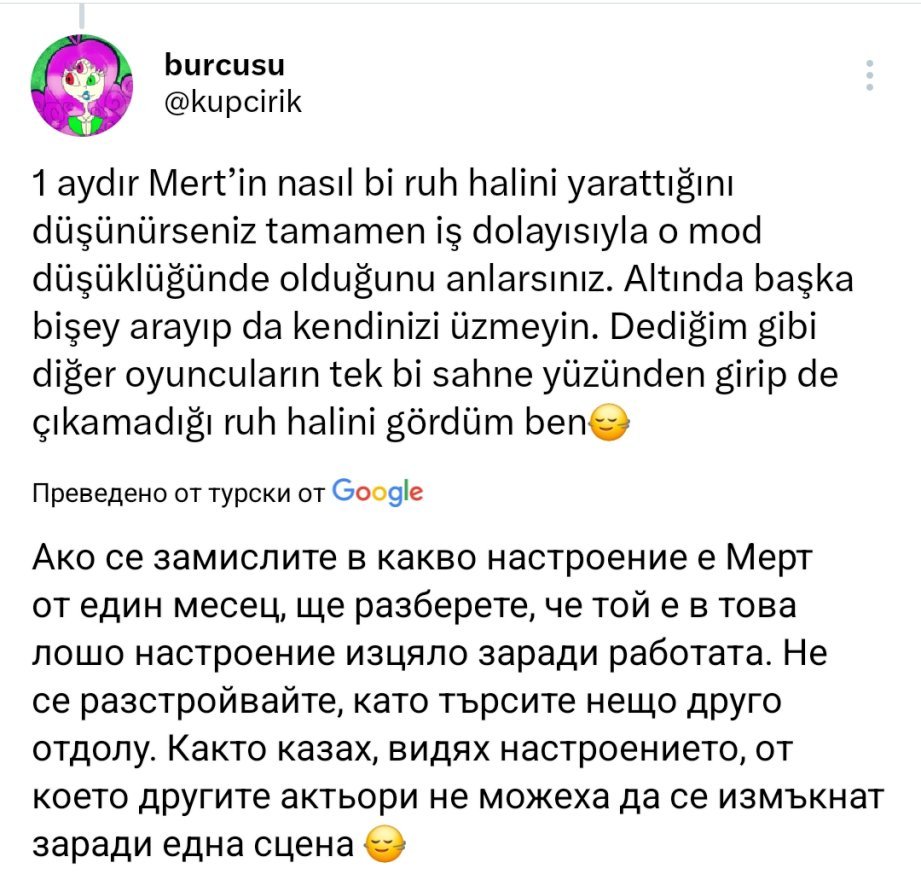 Честно казано ми стана интересно, защото мислех, че Кязъм е умрял или вече си има нова любов (майката на Пелин). Та се учудвам, че чак Есме е бременна. В този сериал всичко възможно се случва на всички останали персонажи, но не и на Сейфер. 🤣🤣🤣