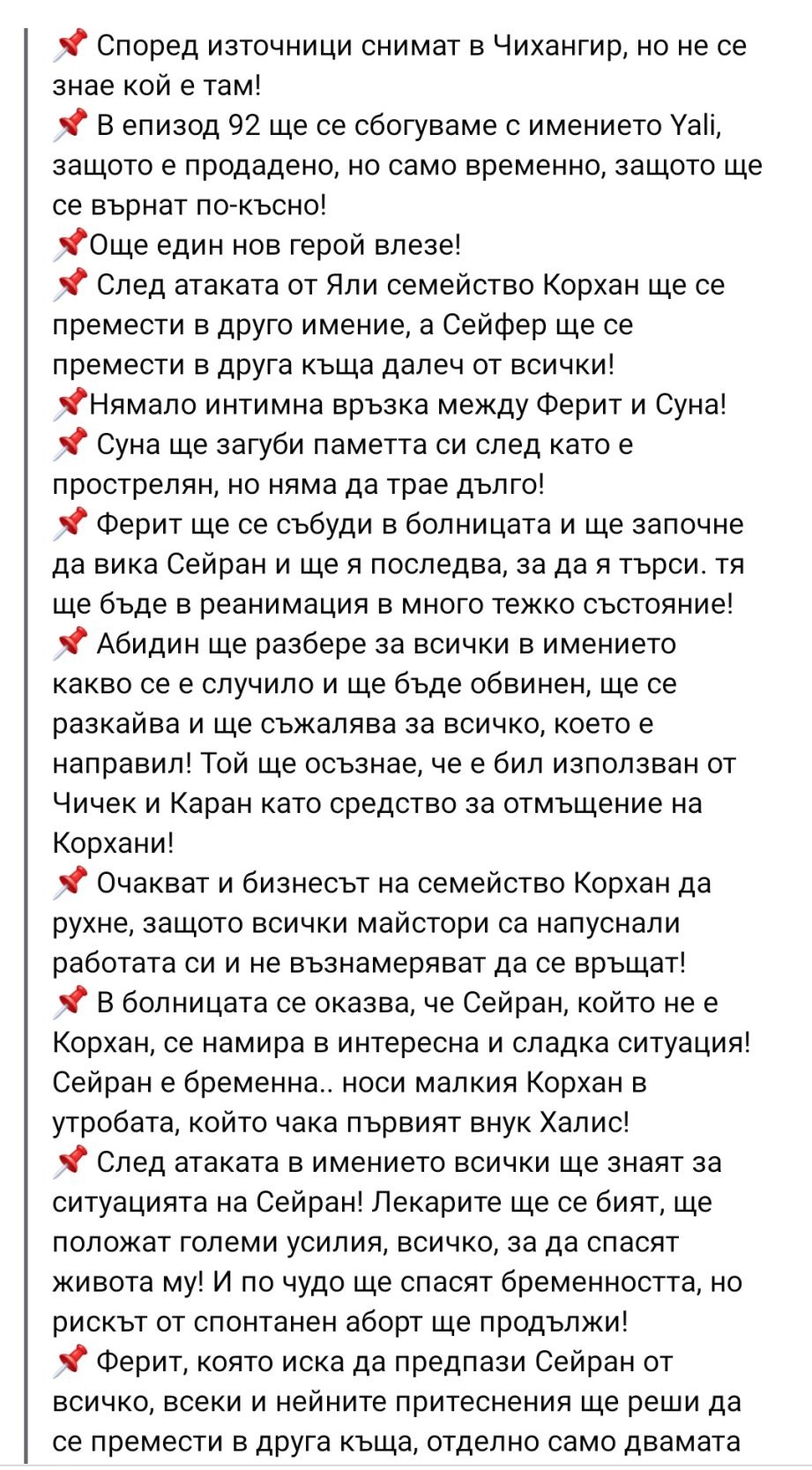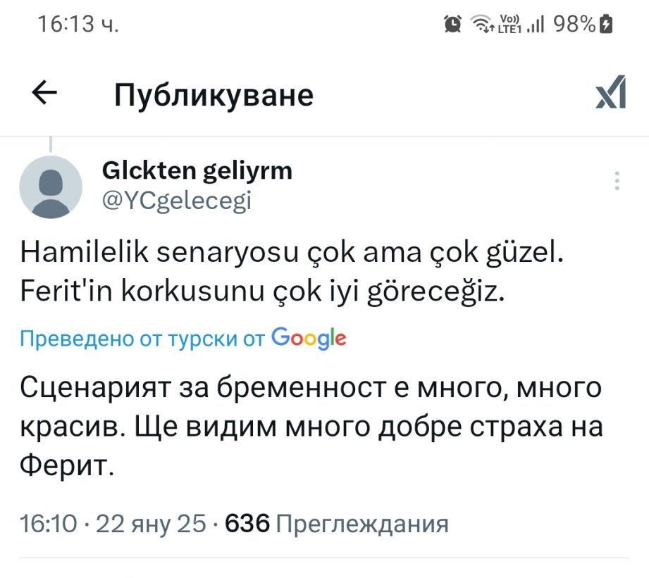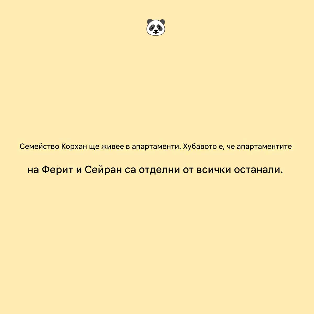 Много се надявам на happyend. Това е третият турски сериал който гледам.  Първият “Любов под наем” беше много разтоварващ и лежерен, вторият беше с някакъв злодей Джанзис и убиха главната героиня накрая. И Бараж съм заглеждала (където в последната серия събраха ГГ), та надявам се тук да има Сейфер и смислени и хубави моменти от тук нататък.