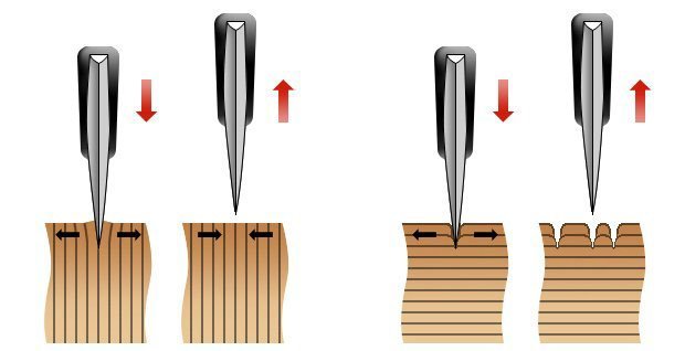 Дървена разбира се. Тези метални, стъклени и гранитни са ужасни, дори и бамбуковите затъпяват ножовете. Най-добре да е end grain, хем е по-издръжлива, хем по-малко затъпява. Първата илюстрация е на end grain, а втората на нормална дъска с надлъжно разположени дървесни нишки.