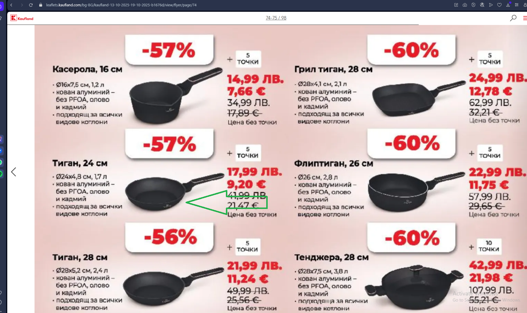 Влязох им в сайта и първия срещнат /от новите/, на  които погледнах е пак без  без PFOA, олово и кадмий но е почти двойно по-скъп. Да разбирам ли, че няма общо с тефлонови покрития? Тези от брошурата в К-нд доста евтини ми се струват? > 24см = 18лв