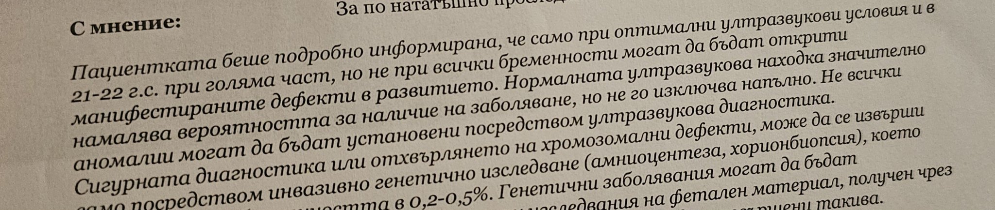 През това време имахме съмнение за проблем и ходих при друг специалист за второ мнение, той също прави фетални морфологии (д-р Цонев, Варна) и ми каза да изчакаме и ми запази час за ранна втора фетална в 20г.с., за да може навреме да се види.