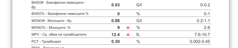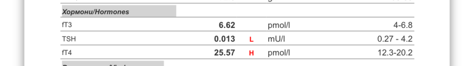От всичките изследвания само те имат раздвижване, хемоглобина от 103 съм го вдигнала на 118, което е ок, хематокрита излиза нисък с 0,01, това също не е проблем. Другите стойности са ми интересни, особено щитовидните. Щитовидни хормони съм изследвала досега 2 пъти и всичко е било в перфектна норма.