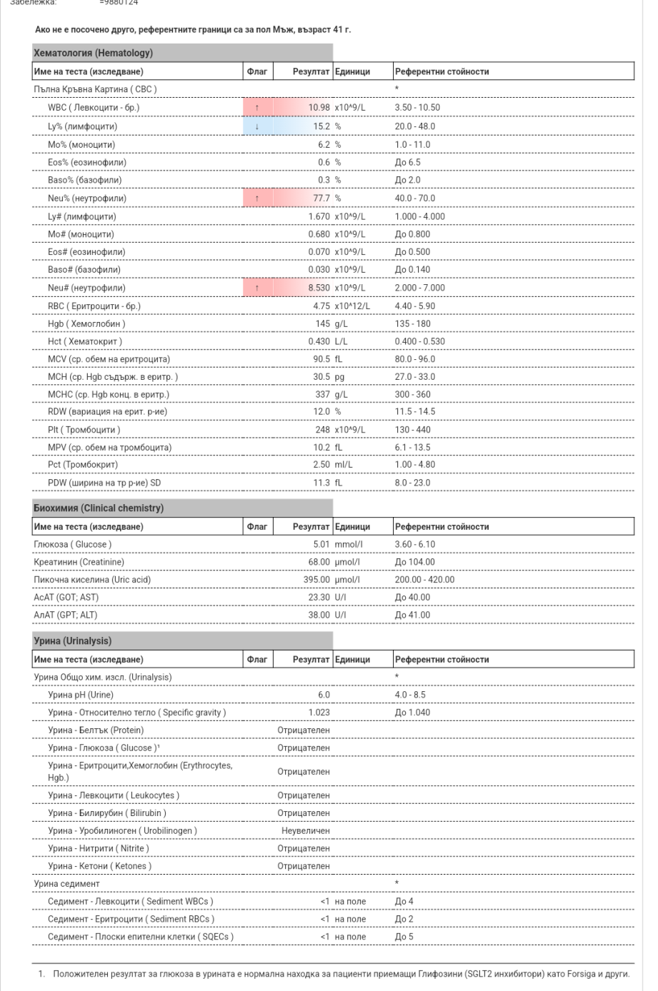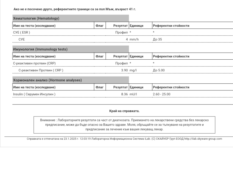 Днес моя мъж си пусна изследванията назначени от личната ни лекарка.