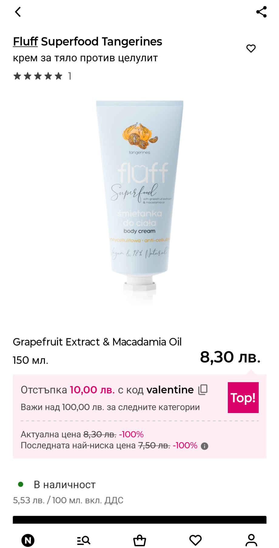 Февруарският Кибрит не е лош като разнообразие на продукти (особено ме зарадва да видя розовата вода), ама специално с тоя антицелулитен крем са се изхвърлили с цената. В Нотино на редовна цена е 8,30лв.