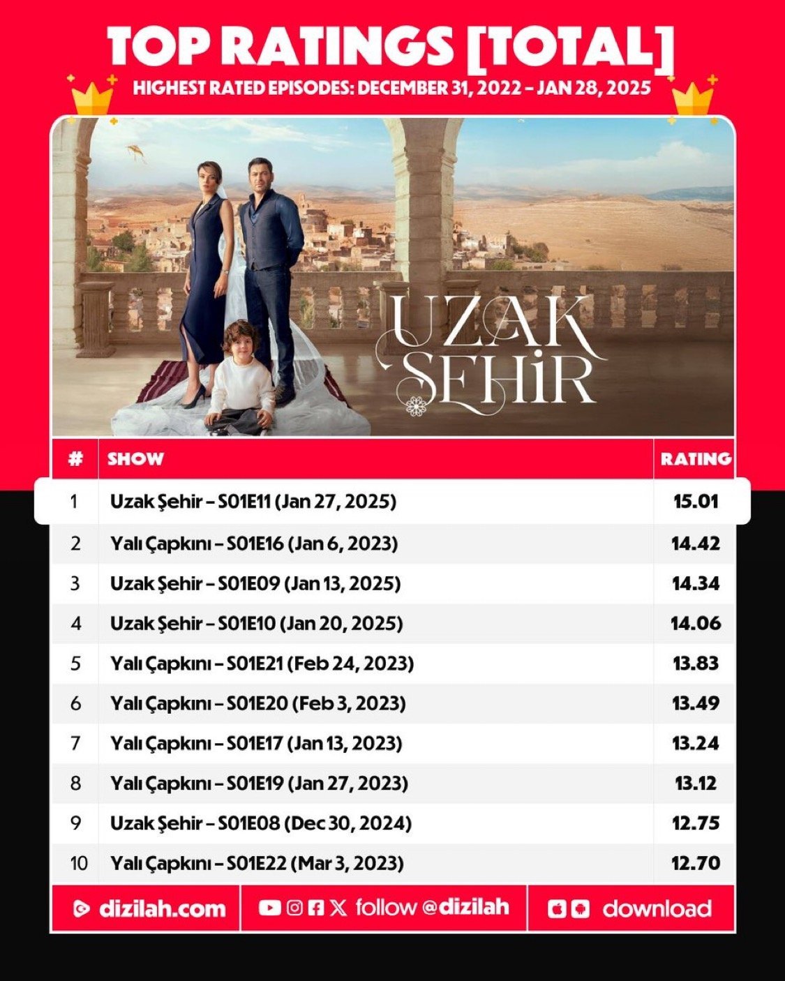 Дизилах пуснаха топ рейтингите (тотала)от 2022г до вчера 2025г. Първи сезон на Рибарче е в класацията. До момента Далечен град оглавява всяка седмица,някога и нашия сериал беше на върха. Не знам защо в таблицата го няма 15-ти епизод….той беше с един от най-високите тотали,може би защото е от 31.12.2022г.