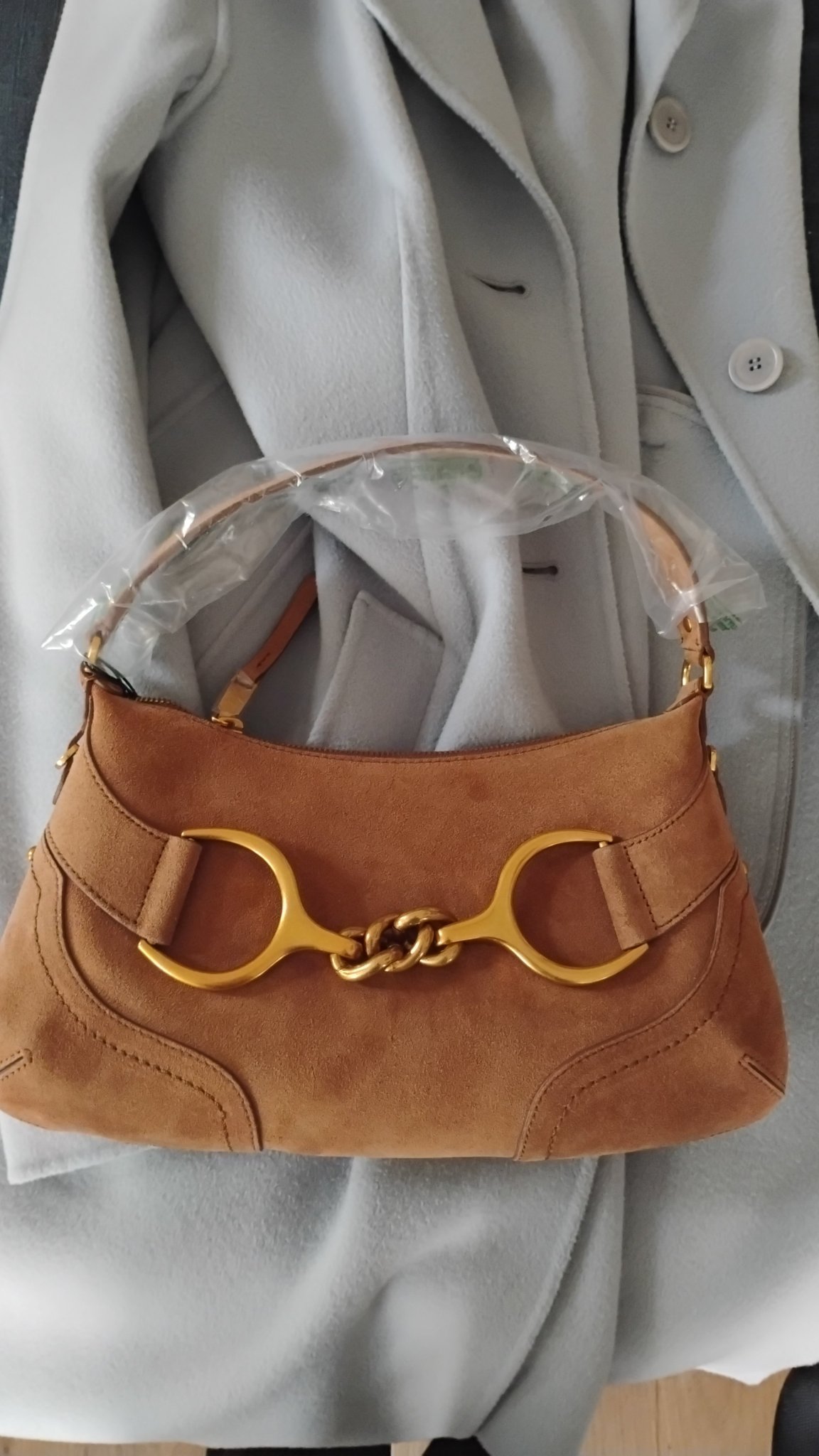 Моята чанта дойде и съм много доволна, като размер ми е супер. Миналата година взех средния размер, но не ми стигаше, а тази е супер. Веднага й сложих и дебела дръжка, чудна е. Единствено се дразня, че целият хардуер го правят в златист гланц и пада бързо, но няма пълно щастие.