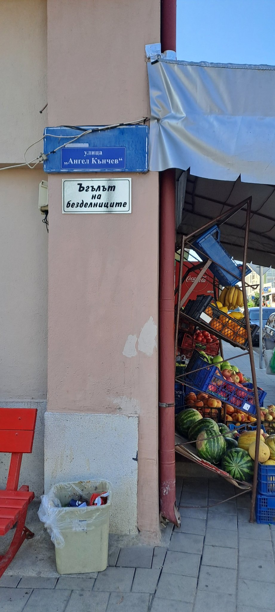 Ъгълът с ул Мусала. Коша за боклук е "за акцент" и не пречи да накацат на и около пейката Wink