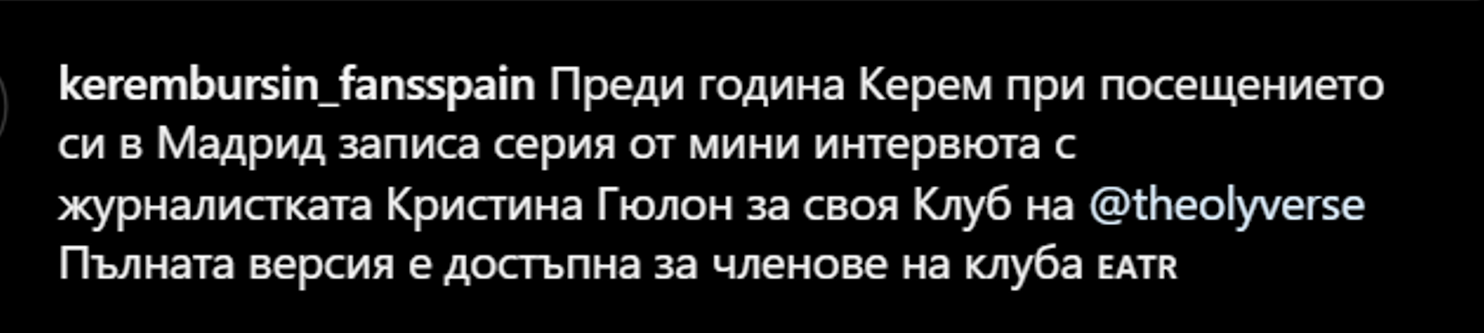 Много интересно интервю на Керем на английски език,
