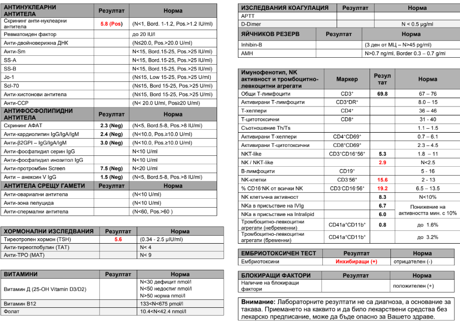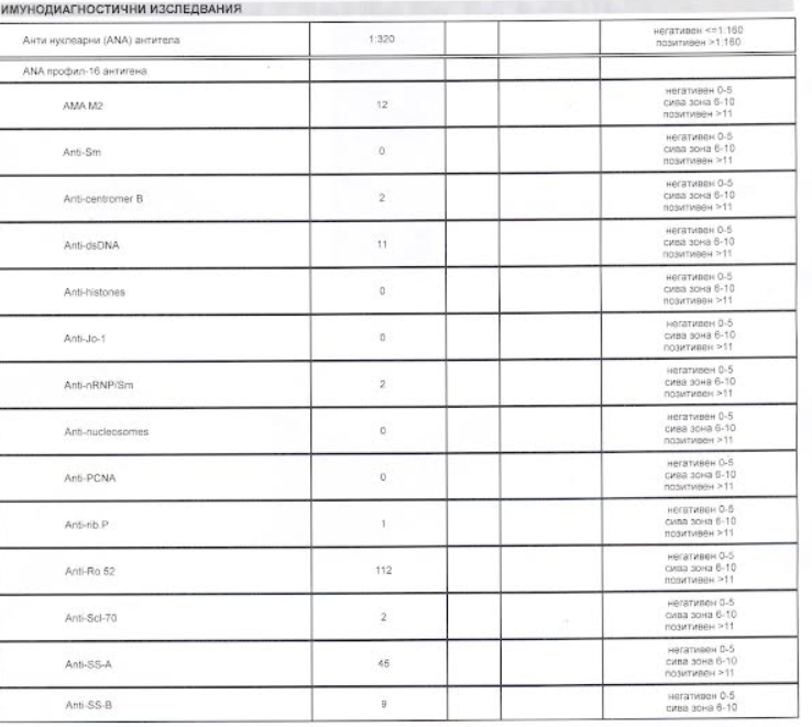 Виждам, че обсъждате имунологичните, ще кача първите ми изследвания, ако на някой са му интересни (в скрит текст). Първите са от доц. Русер, от който бях недоволна, след това попаднах на доц. Михайлова. Първата ми терапия беше с омега 3, куркумин и вит. Д