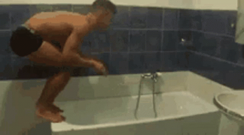 Алфи, 2в1 прави. Хем баня ,хем гимнастика.