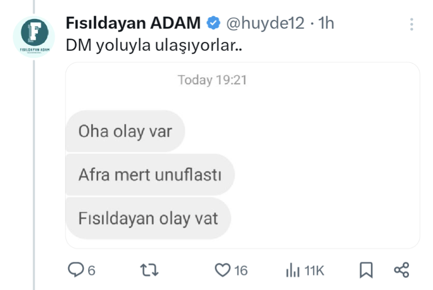 Ей този блогър-журналист май първи е написал новината, някой тази вечер му е пратил съобщение да го информира, че Афра била отследвала Мерт и той така разбрал.