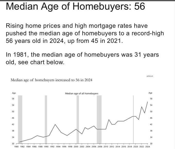 Аз да се върна малко на темата за имотите: ето какво четох днес за САЩ - медианната възраст на купувача на жилище е вече 56 г. Само допреди няколко години е била 45, а 1981 г. е била 31 г.