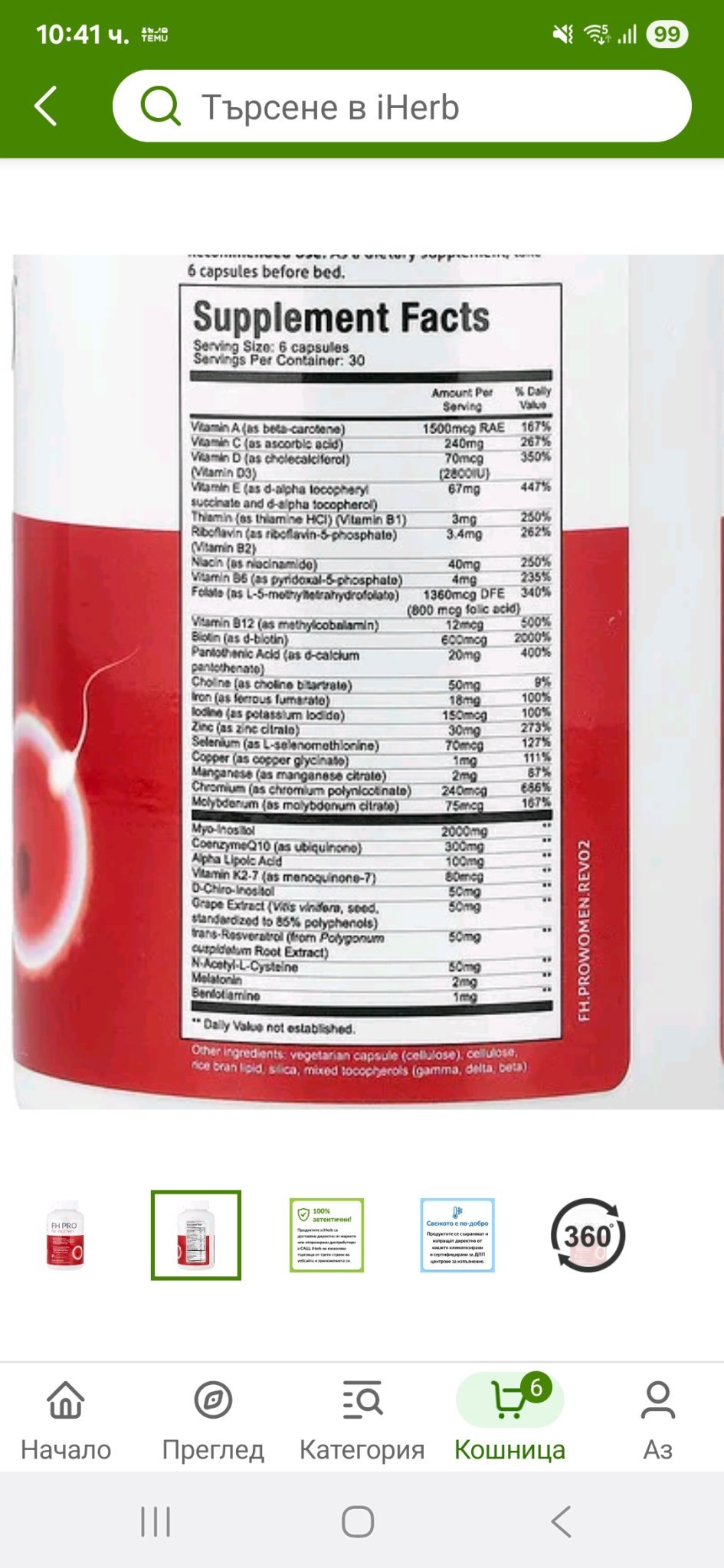яйцеклетките т.к.са с лошо качество и не успяват да стигнат до оплождане.От етикета на PH pro разбирам ,че тези дози се съдържат във всичките шест капсули ,които пия вечер.Но мога ли да добавя към тях и още неща за сутрешния прием?Например мио-инозитол ,аргинин и NAC .Както и още витамин Д.Какво би ме посъветвала ?Благодаря !