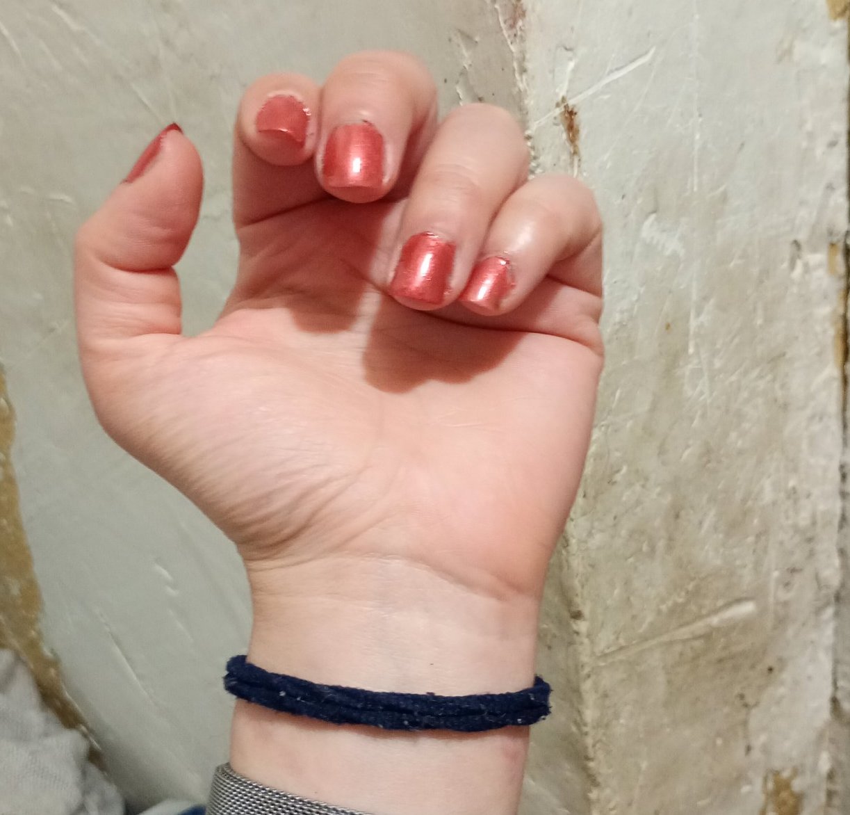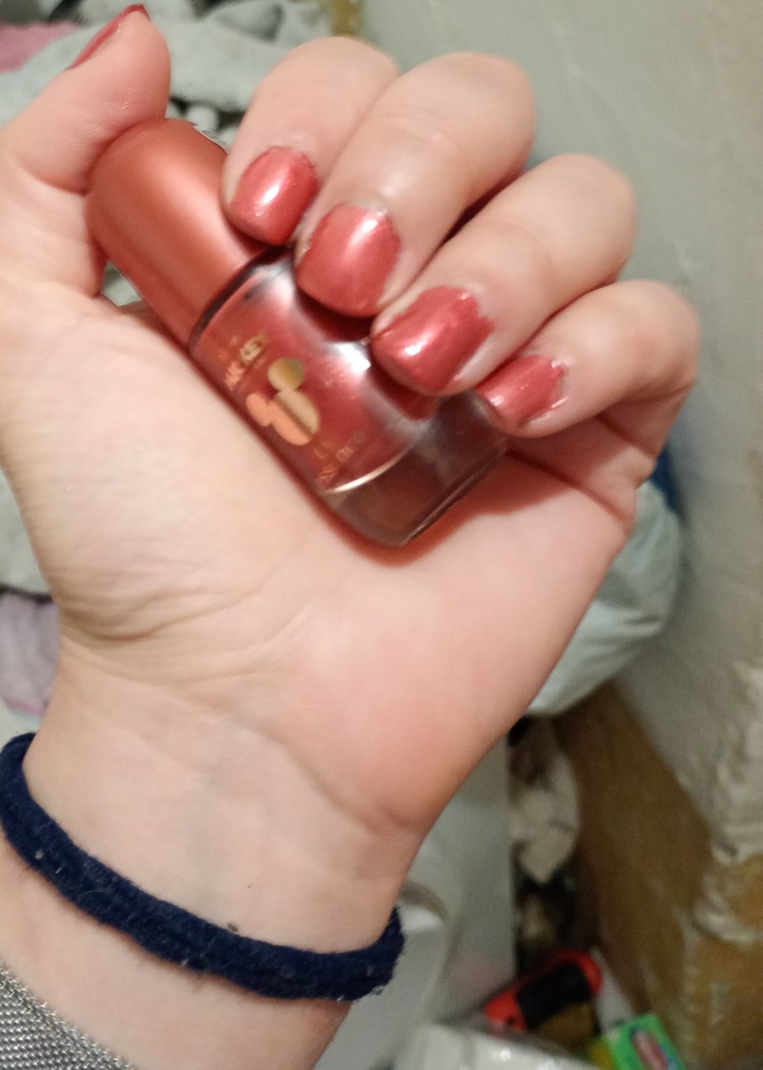 Обаче нанесен изглежда даже по-добре отколкото в шишето. Като гледам снимката и сравнявам цвета и на капачката - според мен го виждам реалния цвят, капачката все пак съм я виждала на живо в магазина.