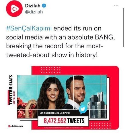 При излъчването си на 06.02.2021  епизод 30 на Sen Çal Kapımı Почукай На Вратата Ми с хаштаг #kalpunutmaz "сърцето не забравя" получава рекордните 2.1 млн туита.