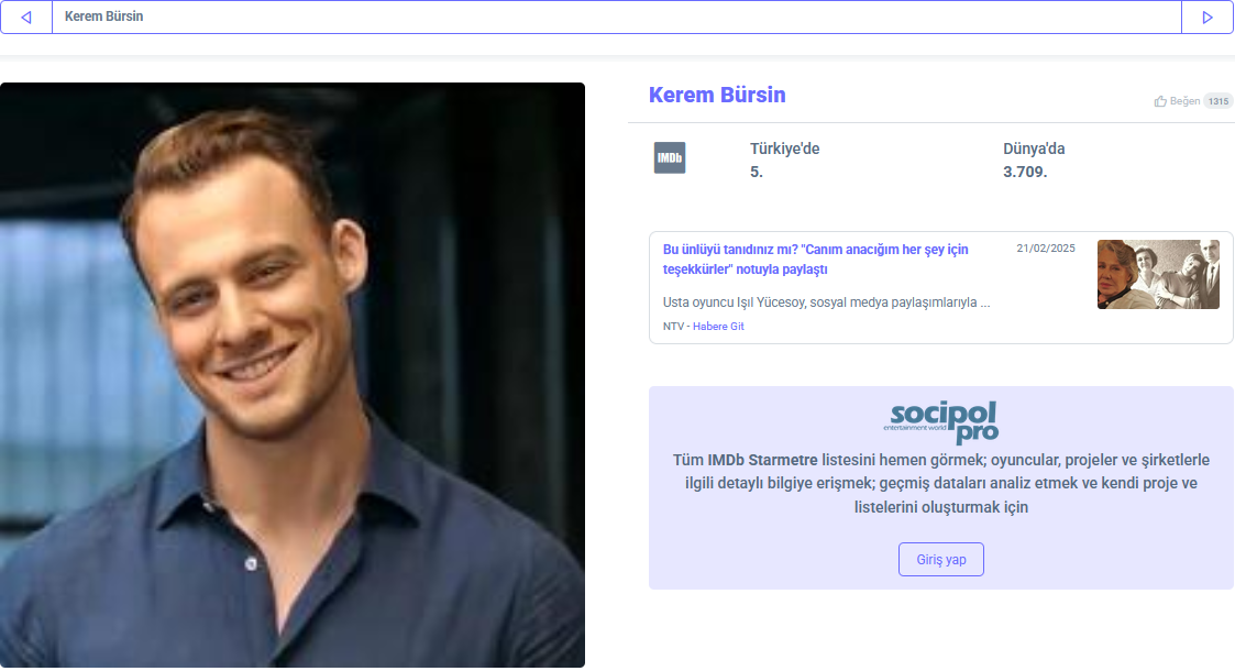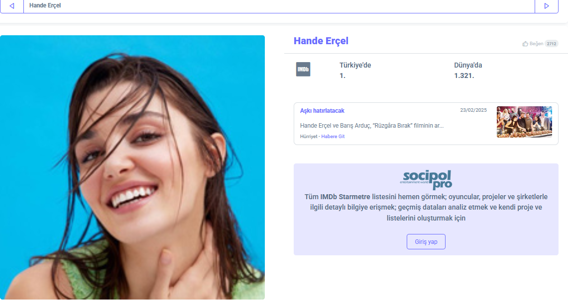 През тази седмица в IMDb STARmeter Ханде заема следните позиции: