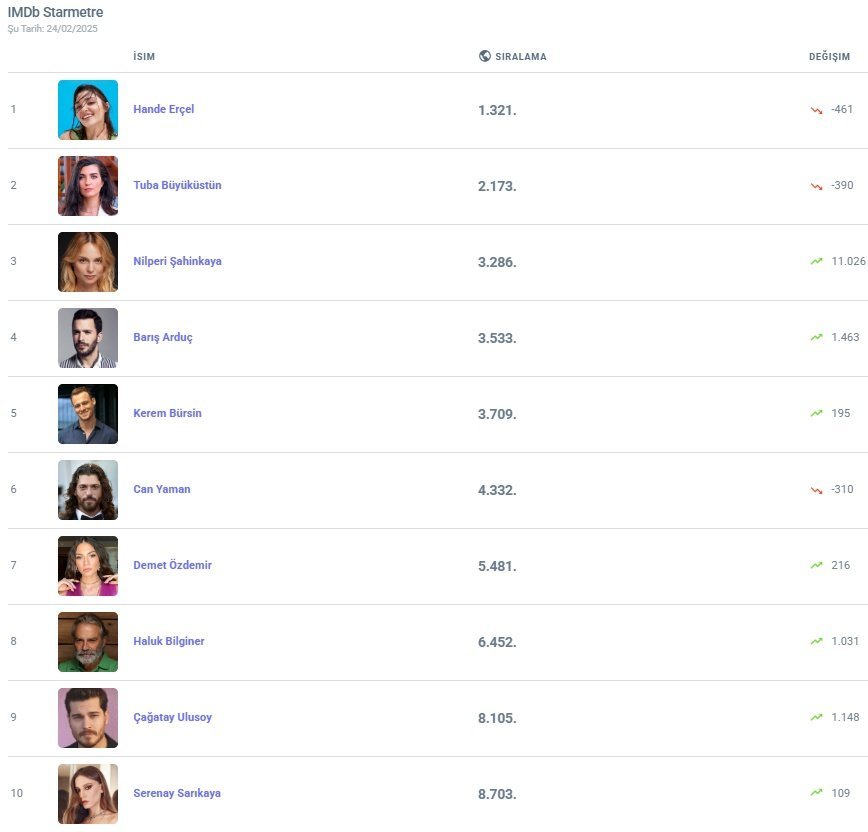 "Тази седмица Ханде Ерчел отново е начело в класацията на IMDb Starmetre.
