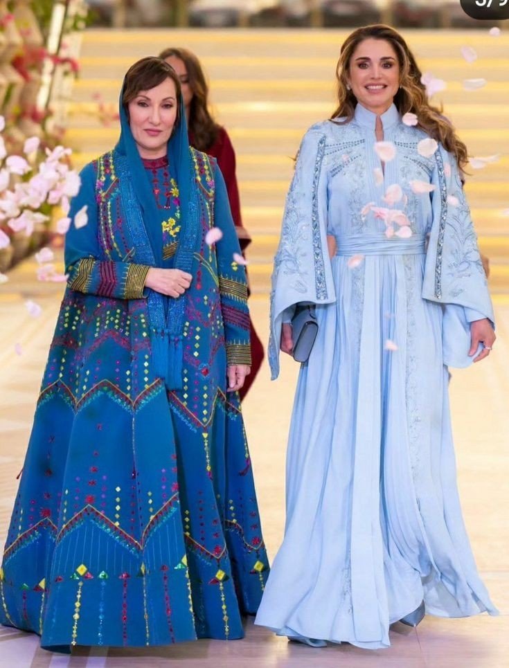 На мен кафтана на Рания не ми харесва толкова, но аз и рядко харесвам такова синьо на дрехи.  Раджва, обаче, е великолепна в червения Purple Heart Хареса ми и в кафевия, мисля че е цвят, който не е за всеки, но на нея е добре.