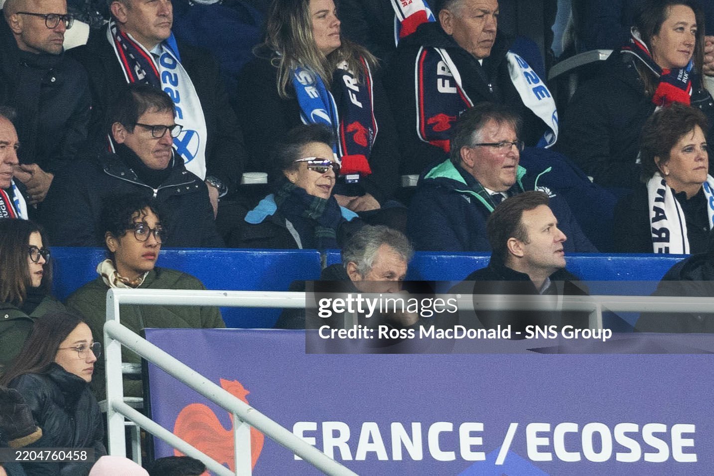 Кралската принцеса, покровителка на Шотландския ръгби съюз, също присъства снощи на мача от Guinness Six Nations 2025 между Шотландия и Франция на Stade de France на  в Париж, Франция.