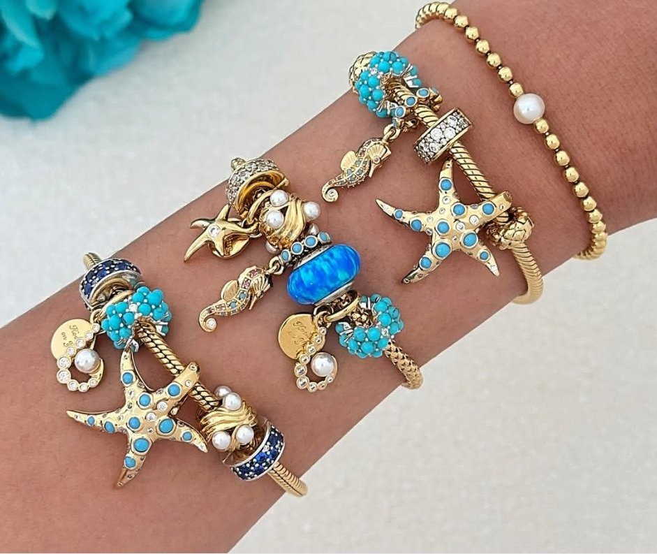 И аз се замислям дали не може да се махне но не знам дали няма да се развали самата гривна 🤔 а е много красива 😍 Другите ти летни талисмани също са супер сладки, покажи как ги комбинира, ако искаш, разбира се 🙂