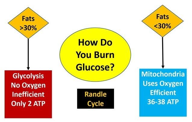 "I’ve noticed that between 15% and 20% [dietary fat] is probably where most people, in their current health state, can metabolize the fat without causing problems for the glucose through the Randle cycle. Especially Type 2 diabetics.