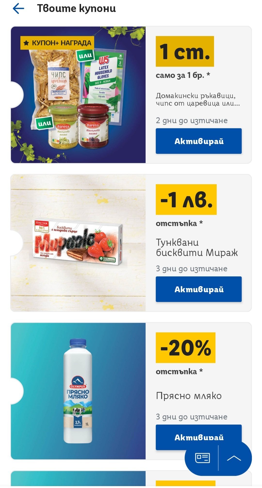 И аз получих допълнителните купони. Някой ако иска вафлички или тортиля, да пише