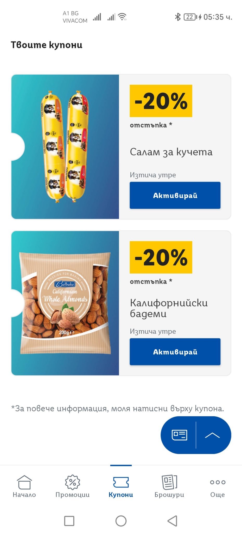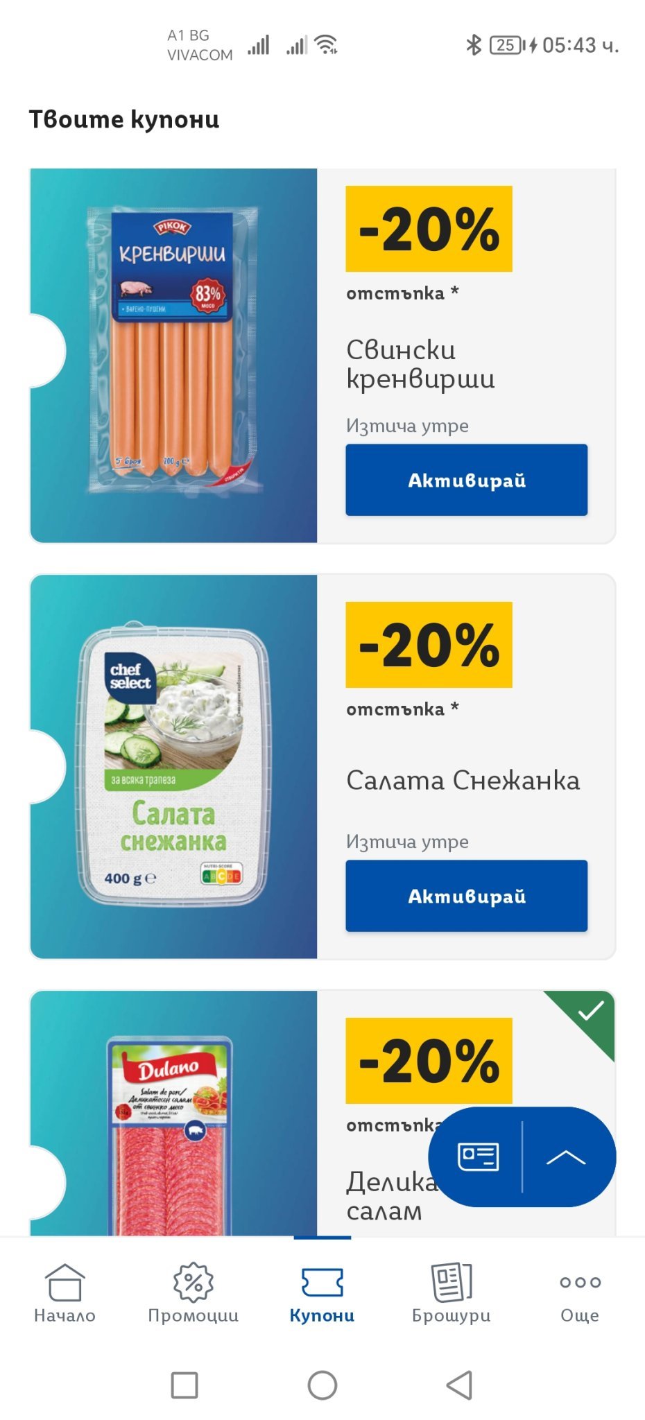 Не съм задействала и купоните от четвъртък. Ако някой иска италиански вафлички или някакви питки май бяха, ще му ги задействам.